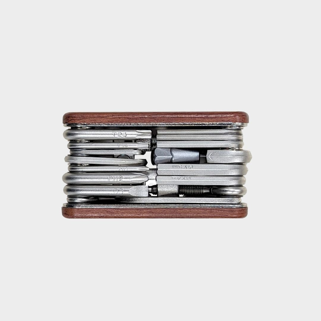 The ST20 Multitool represents the pinnacle of versatility in our collection, offering a wide range of essential features for bike enthusiasts and beyond. With refined styling and high-quality construction, this instrument stands out for its completeness and the distinctive touch of the wood finish on the sidewall.