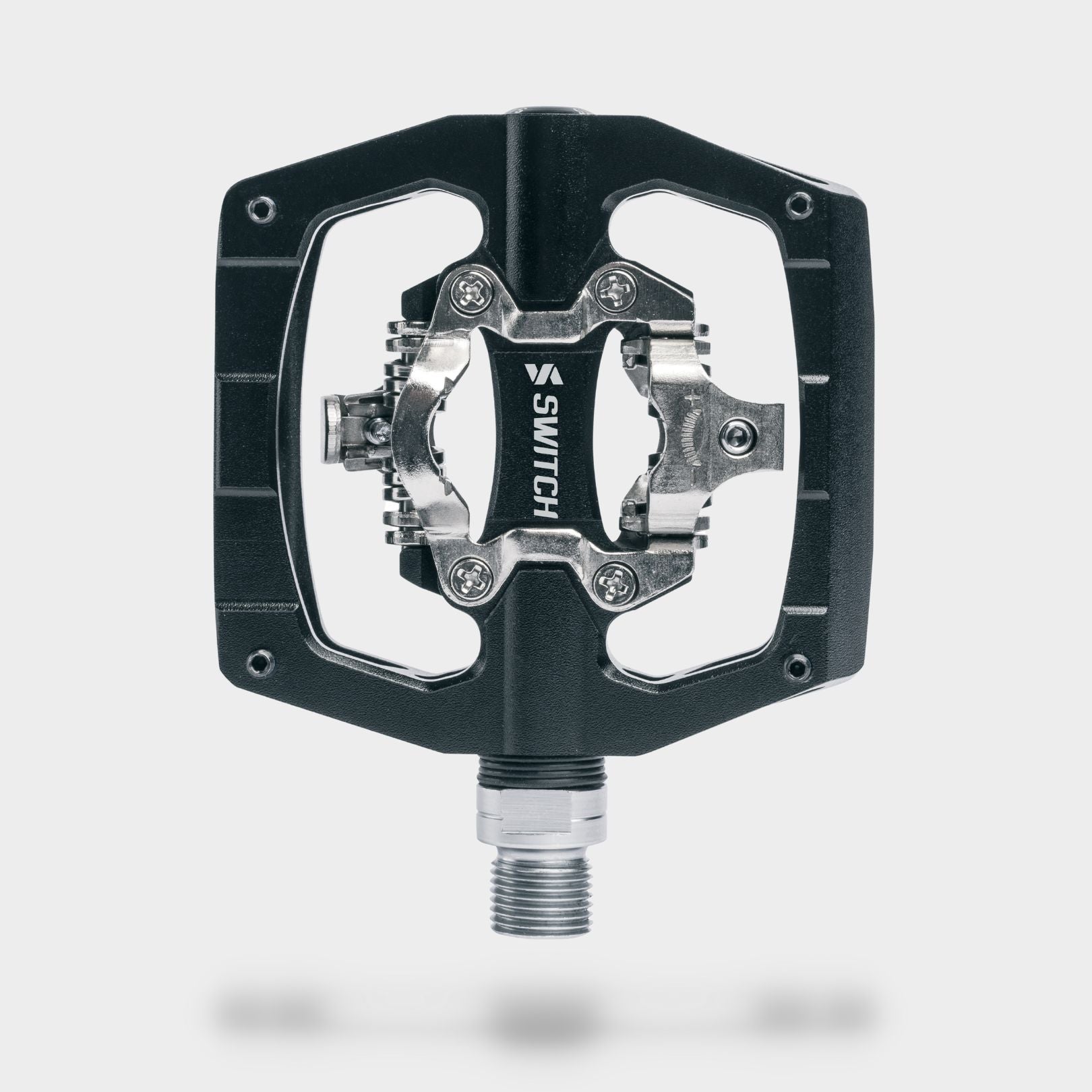 L'axe en acier Cr-Mo usiné offre une résistance et une durabilité accrues, tandis que les picots antidérapantes assurent une adhérence ferme sur les terrains plus techniques. De plus, la pédale comporte des clips SPD des deux côtés, maintenant la chaussure fermement ancrée à la pédale pour une conduite plus efficace et réactive, mais facile à relâcher en cas d'urgence.